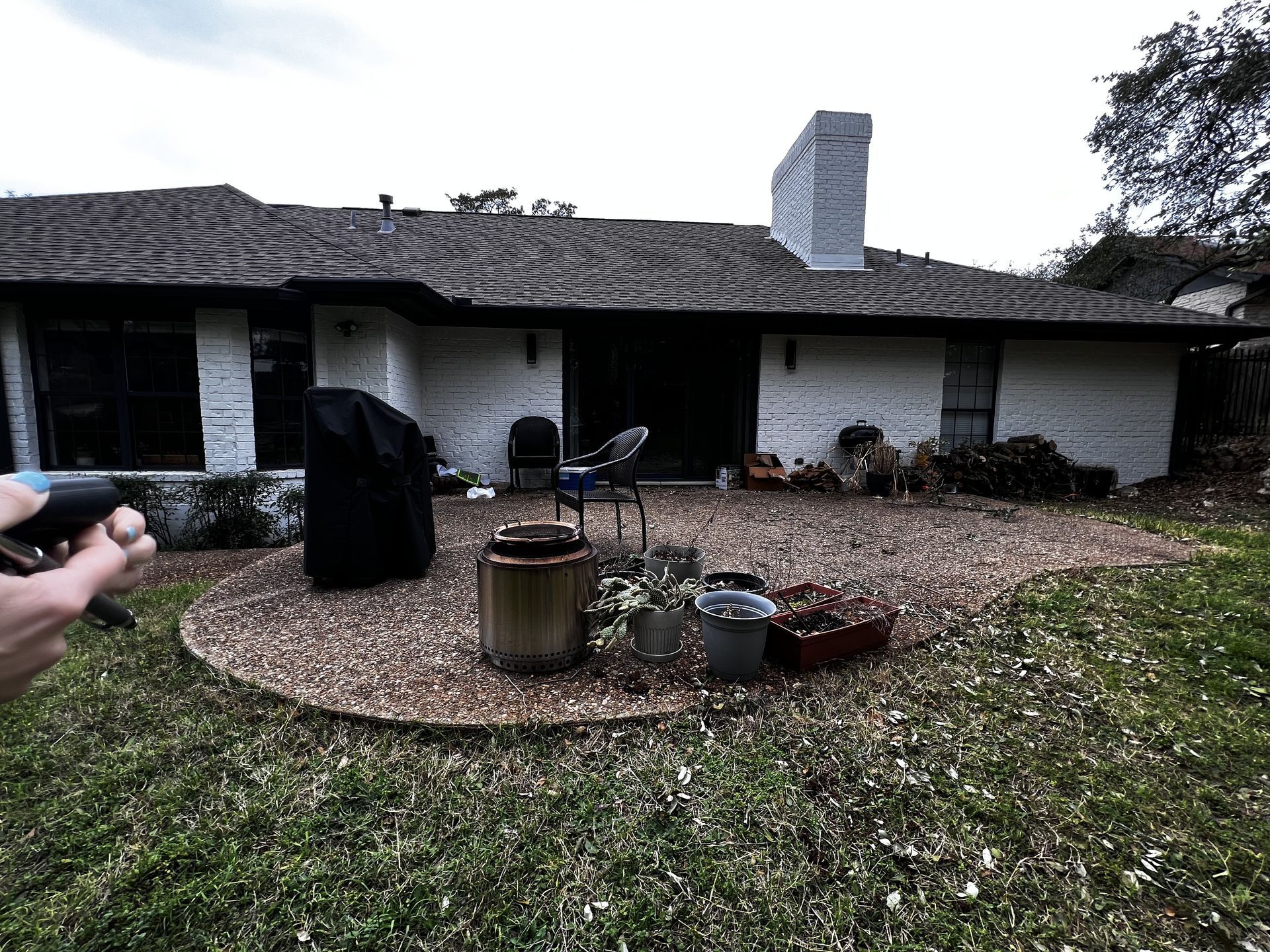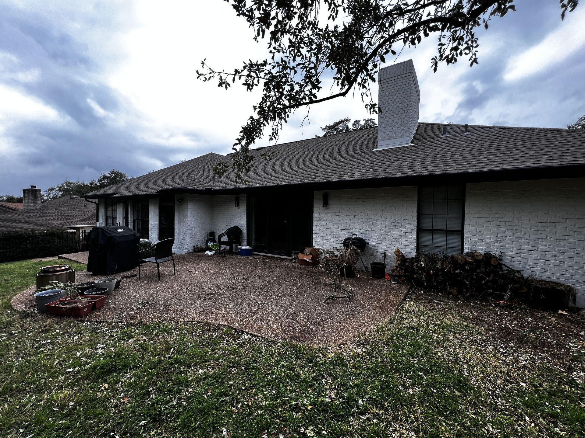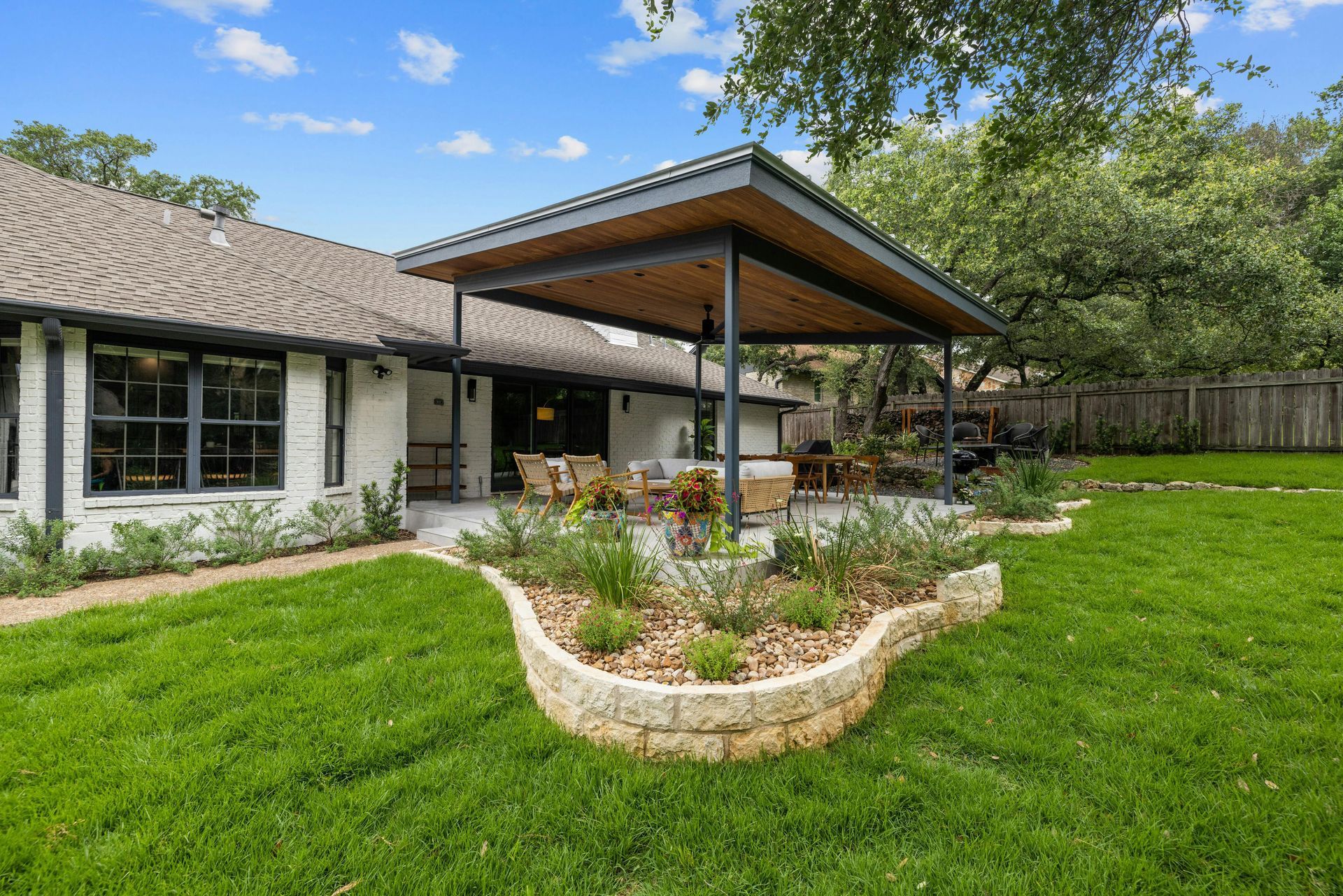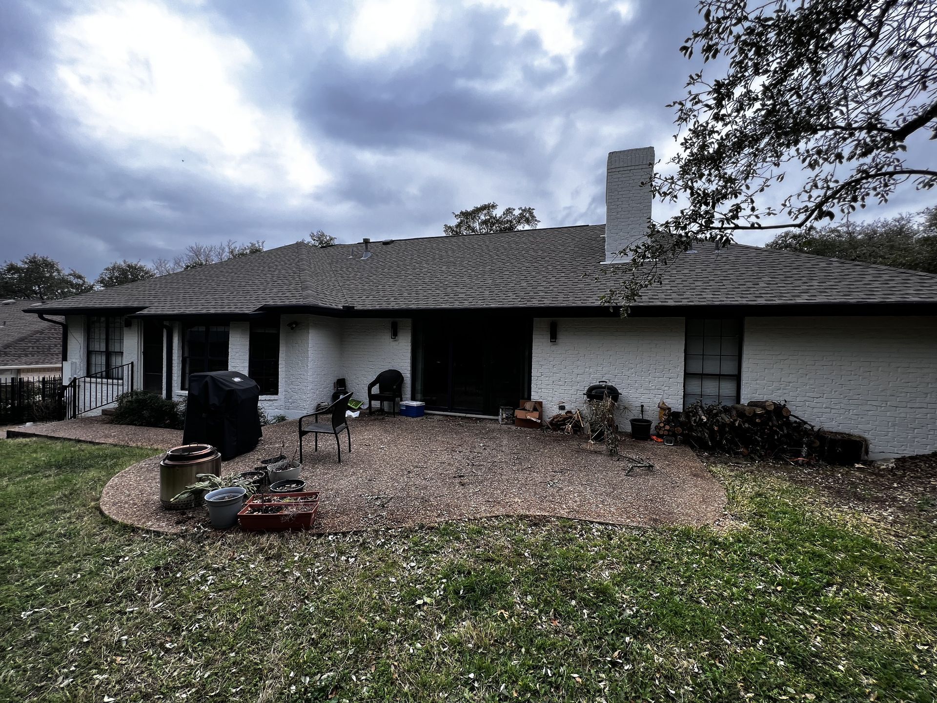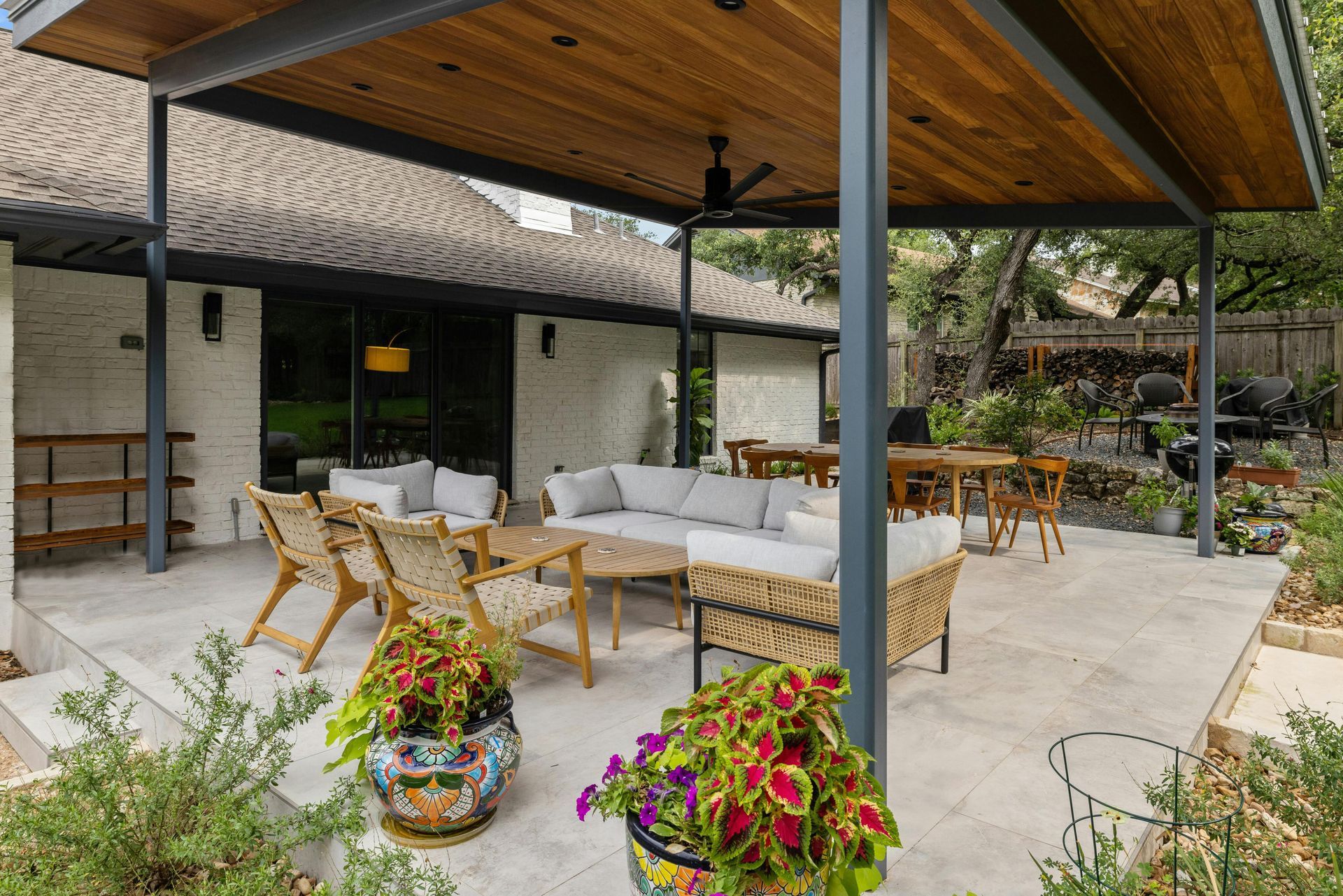 These simple covered patios are perfect for our Central Texas weather, blocking the sun and using a ceiling fan to comfortable environment even through our sweltering summers.
