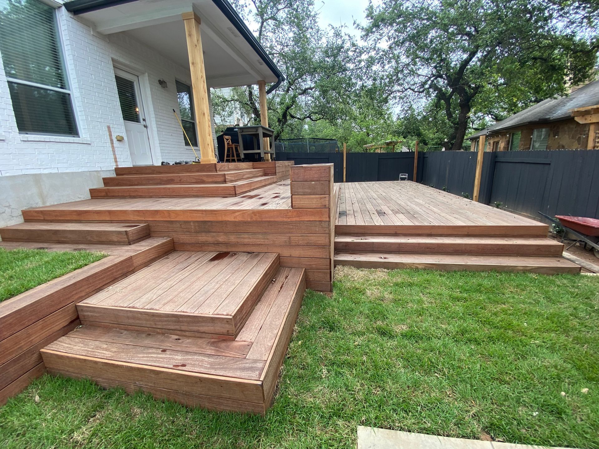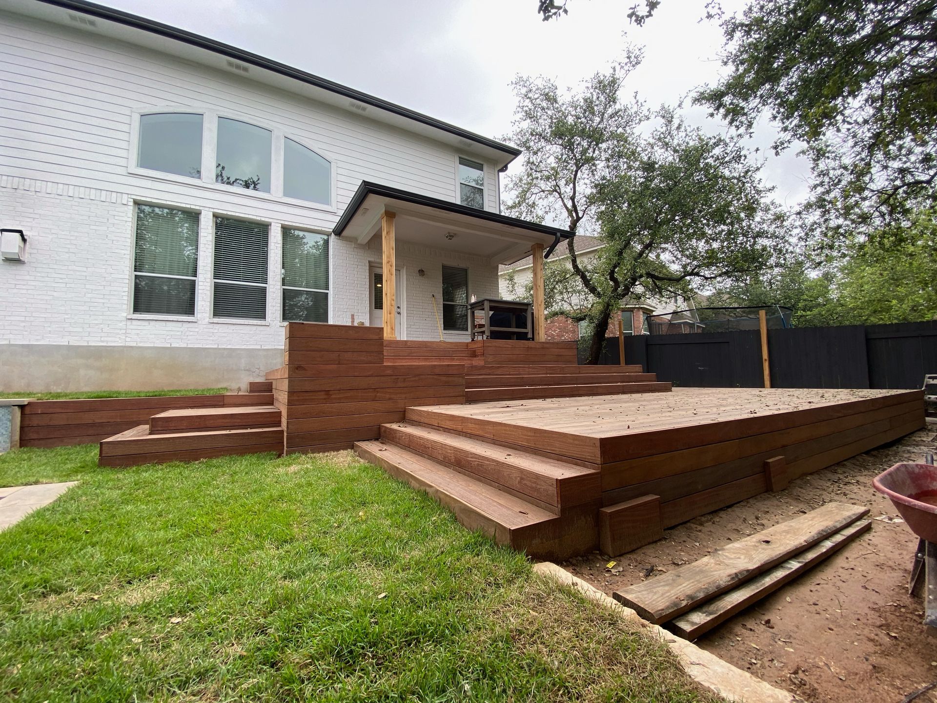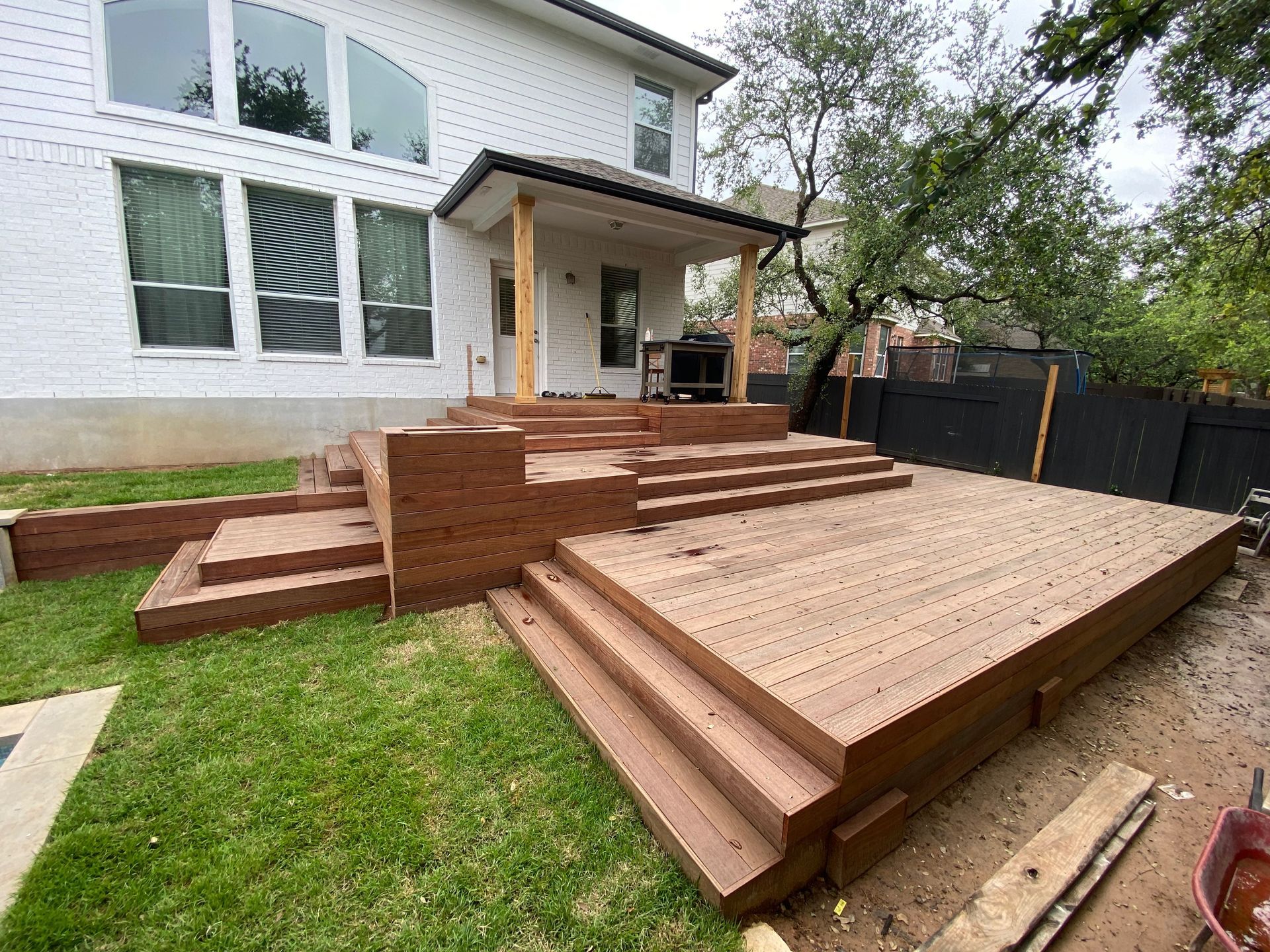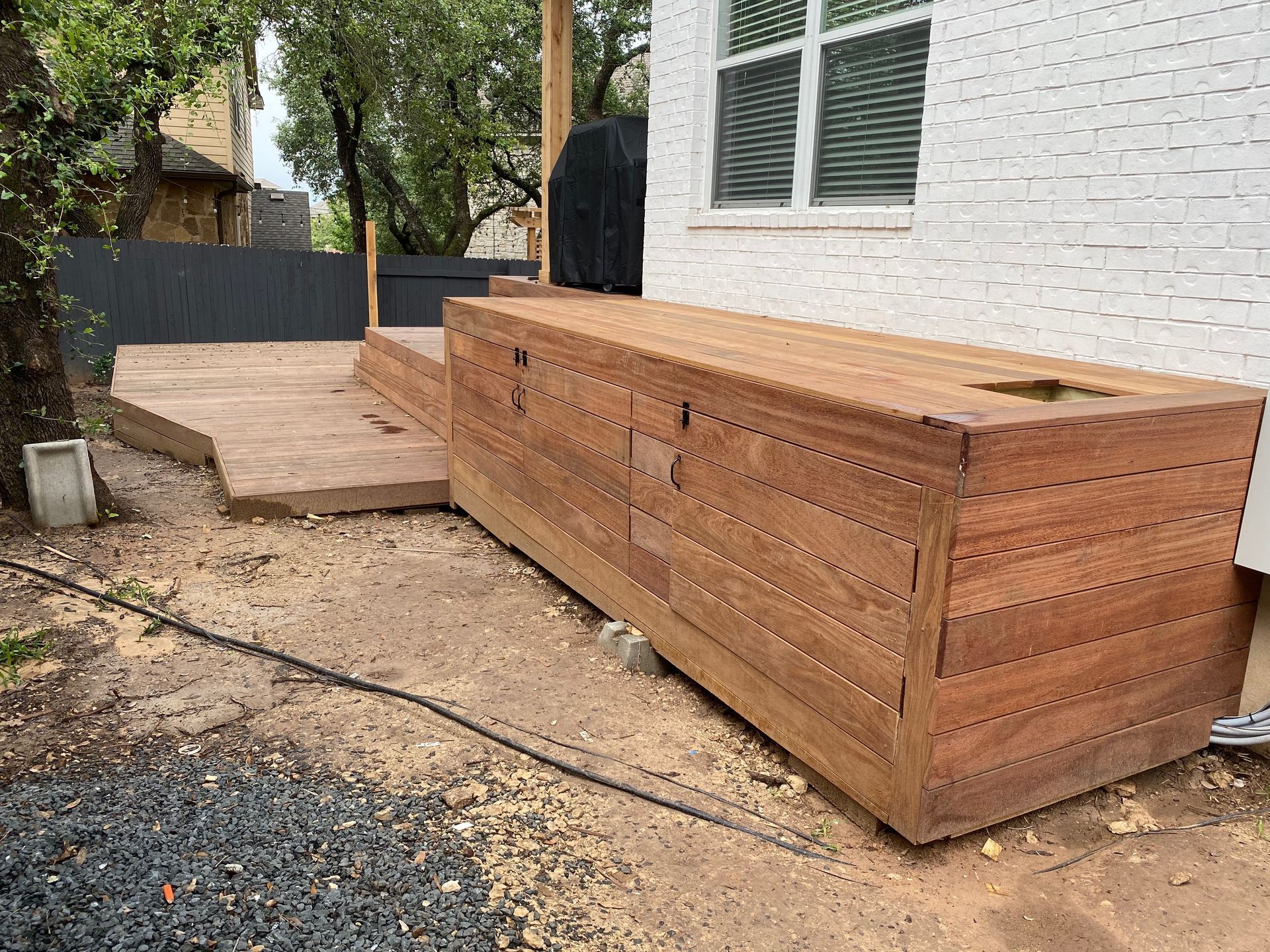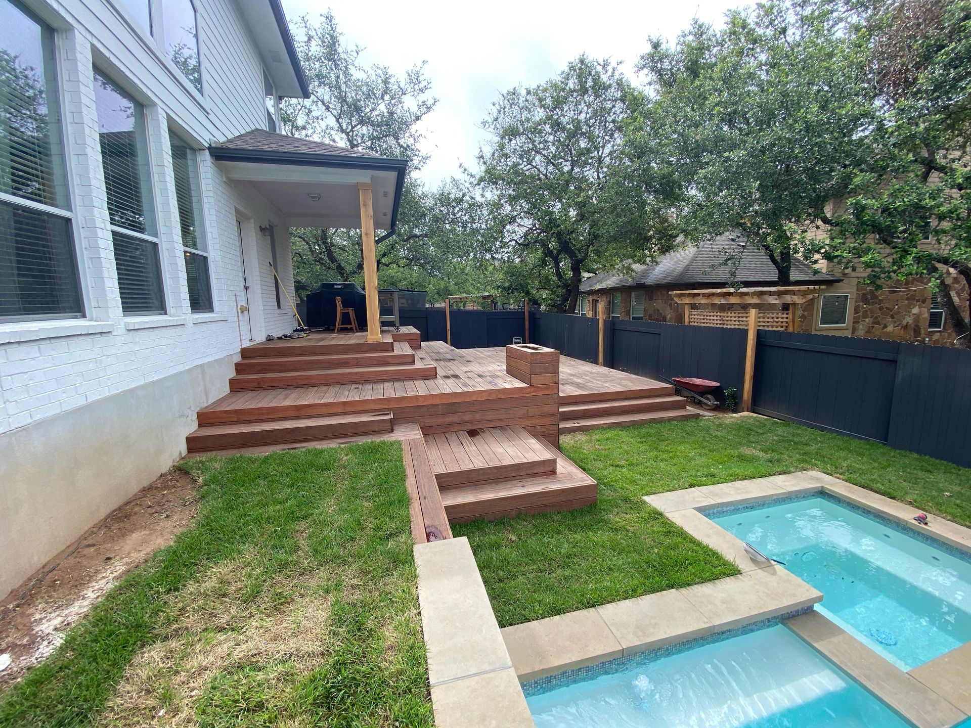 Cedar Park, TX, 78613 - For this Cedar Park family, a beautiful new deck was a must for the parents when adding a swimming pool for the kids. A design challenge was to ensure the deck did not need railings - ensuring all code requirements were followed to ensure safety while keeping the open feel desired by the owners. Beautifully laid out, even the pool pump equipment housed in the same cumaru hardwood used for the deck.