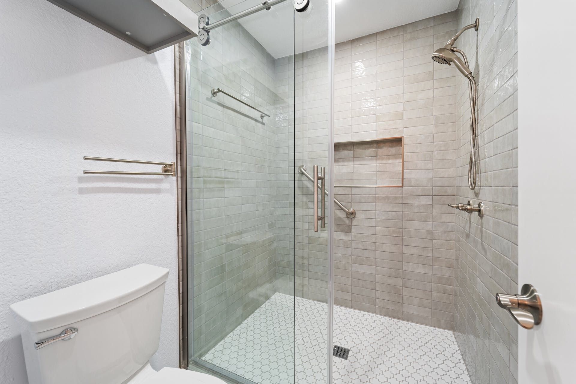 This time, their focus was on transforming the outdoor space. They wanted a functional and beautiful extension of their home that could be used year-round for relaxing and entertaining. Through the design phase, we collaborated closely to explore different layout options and finishes—ultimately landing on a large, covered patio with stacked steps, tiled with a durable, outdoor-rated porcelain. This new space flows seamlessly from their updated screened-in patio, which also received a stunning makeover.
