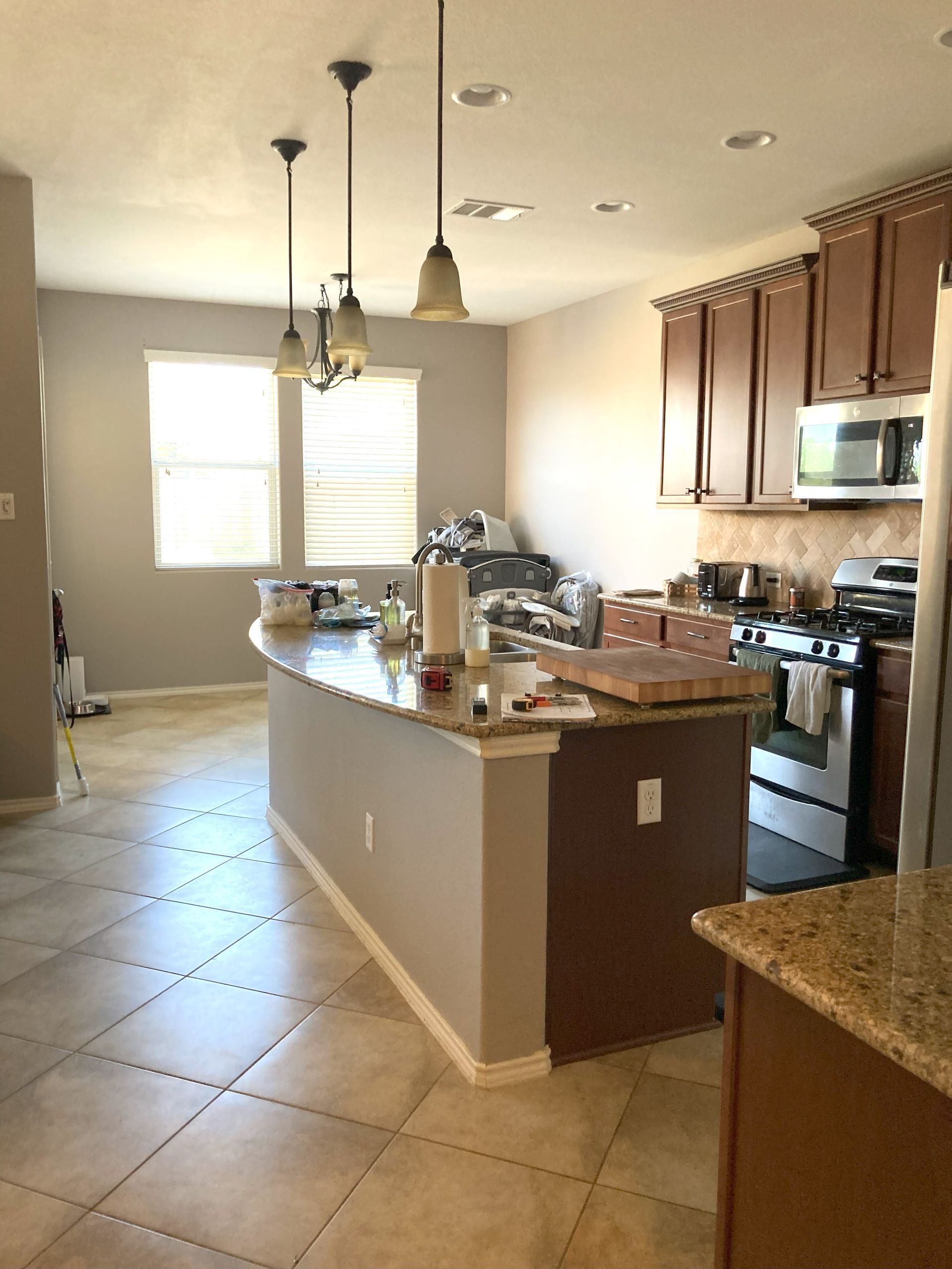 The project included design, permit, and construction services for a home addition and whole home remodel. TRS enclosed an existing patio to add to the living and dining areas and allow for a much larger kitchen area. The kitchen included all new cabinetry and countertops, a large island fitted with two dishwashers and large sink, and picture window to look onto the backyard, all in clean whites. New light colored wood-look flooring, painting, lighting, and removing arches throughout the home to further open the space. For the primary bath - a new floor plan with freestanding tub, expanded shower with frameless glass, opened wall to primary closet and a beautiful European style floating vanity with matching linen cabinet. Altogether creating more space, a more open feel, and a gorgeous, new home perfect for entertaining or just enjoying and relaxing with family.