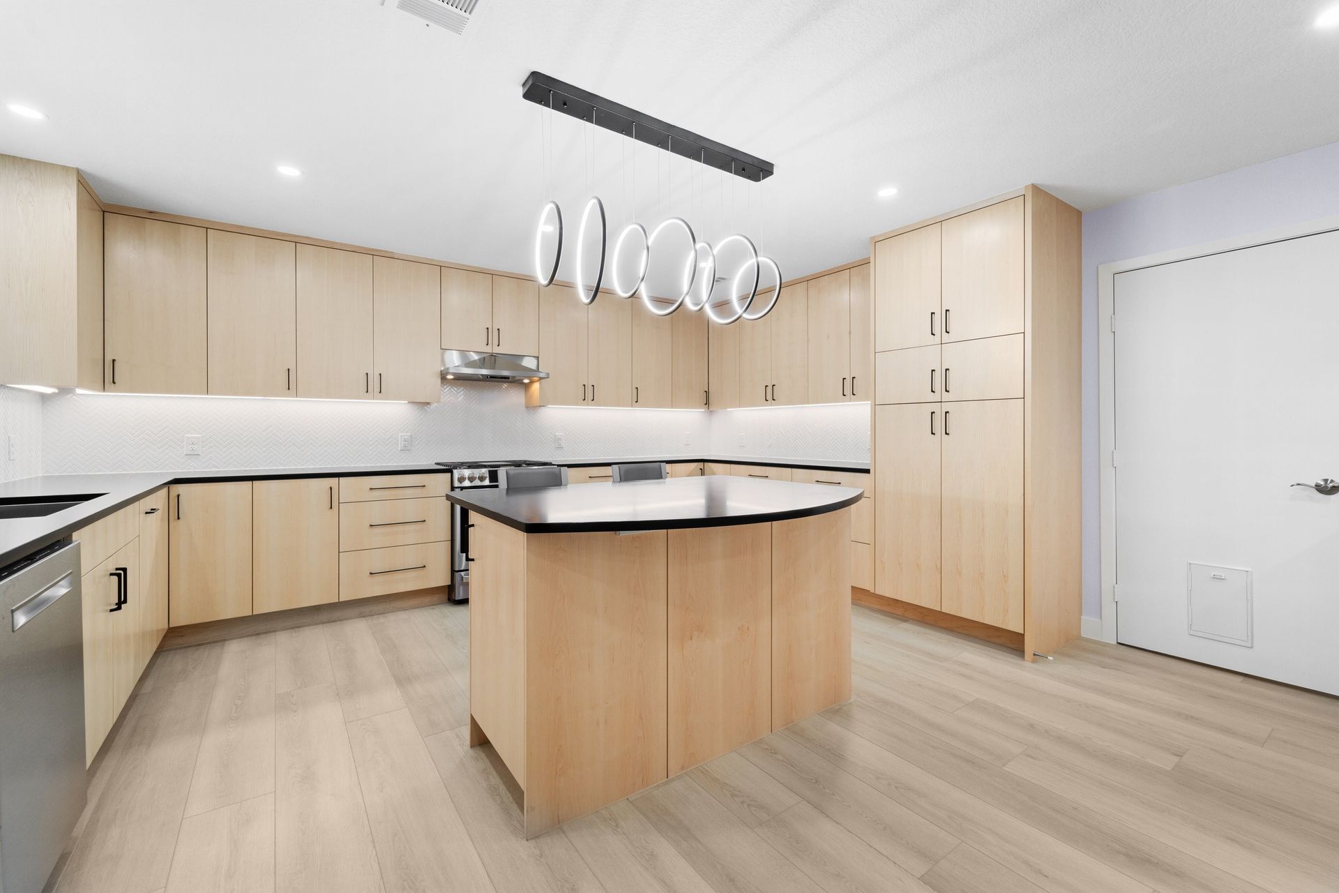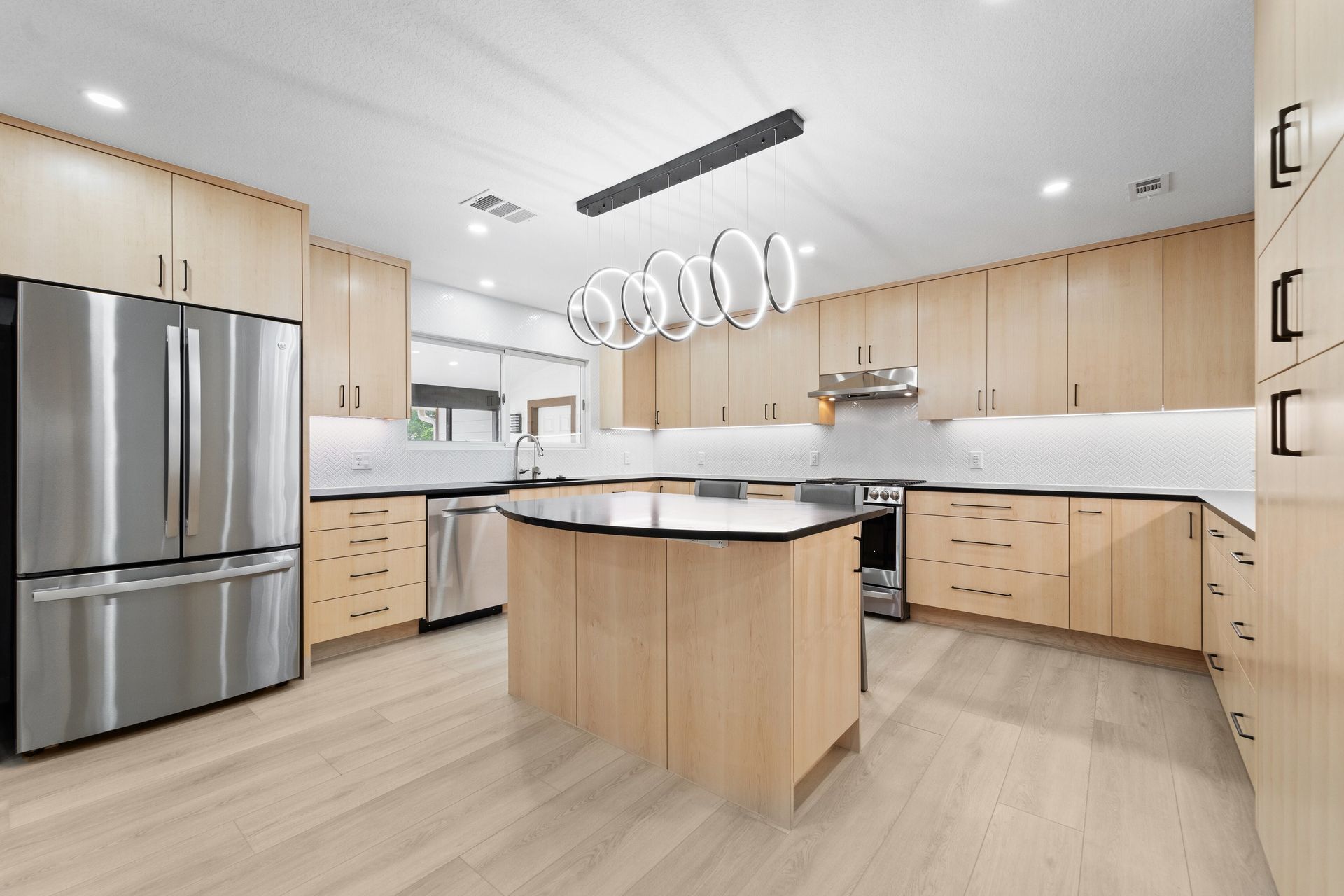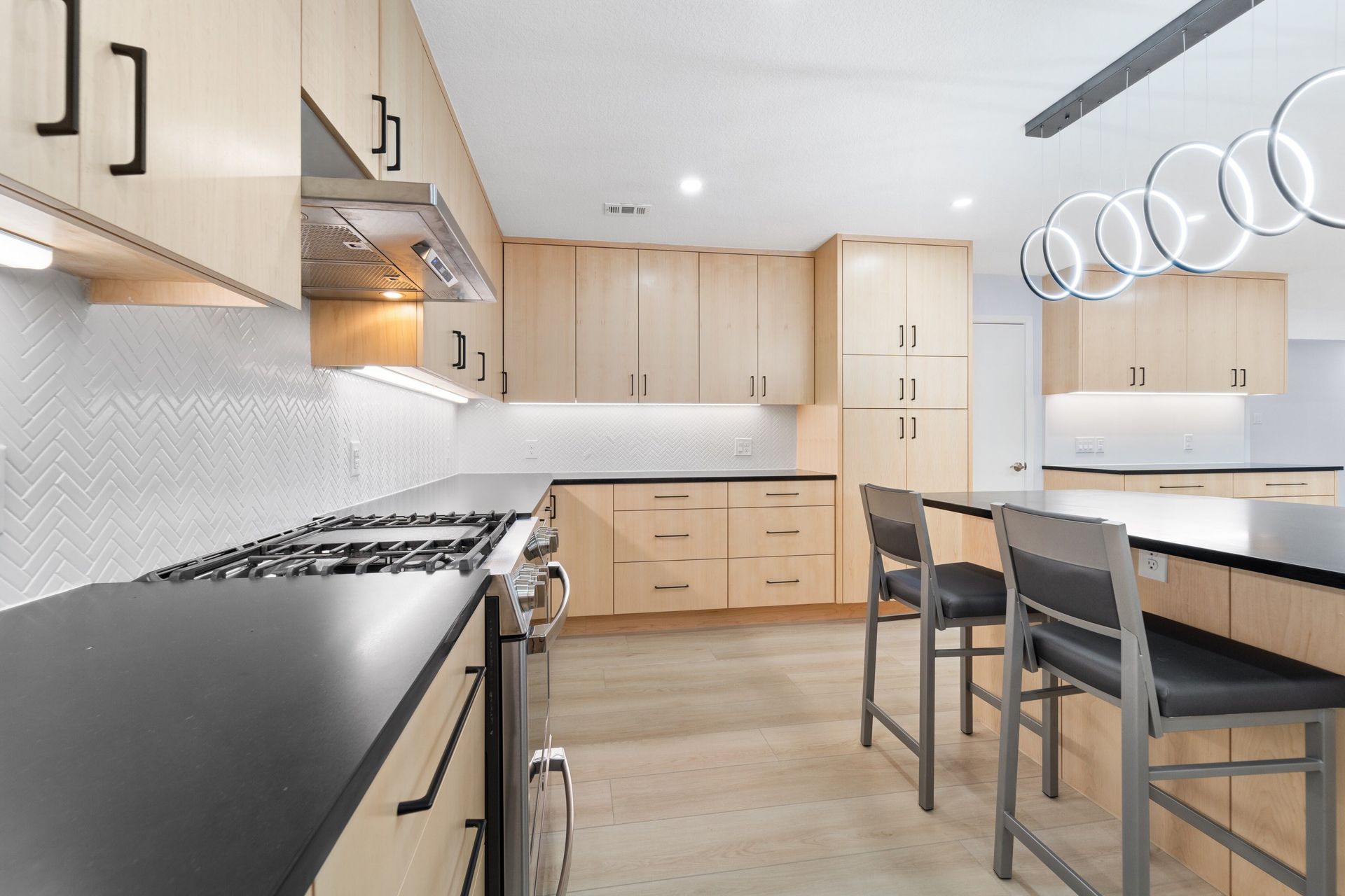 In addition to all new flooring, kitchen, and dining areas matching the previous remodel, they also wanted to give the bathrooms a makeover to better align with their aesthetic, convert part of the garage to a large mudroom/laundry/pantry area, and to do something yet undefined with the outdoor space.