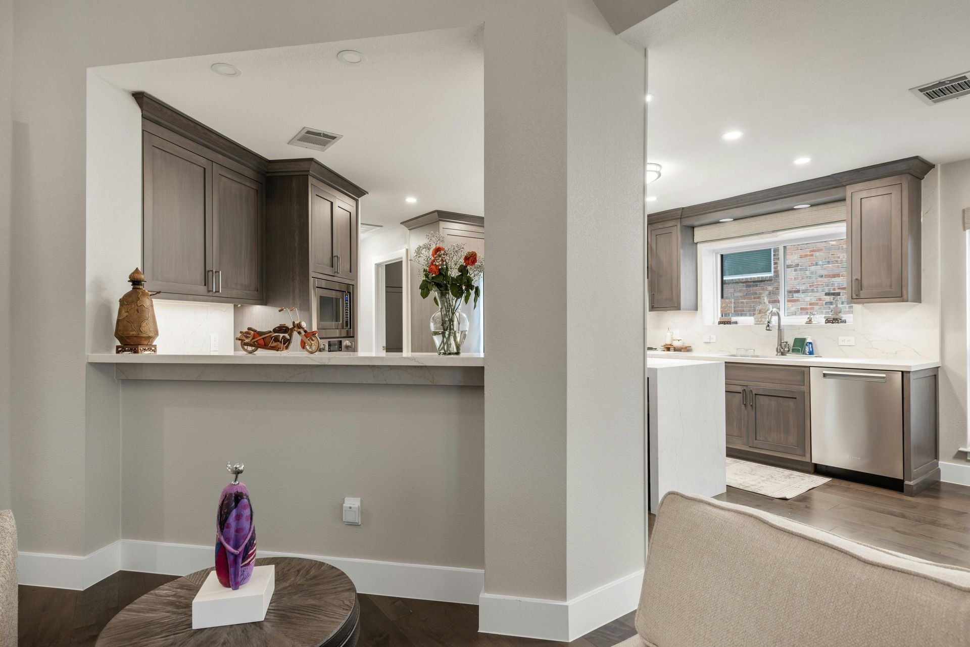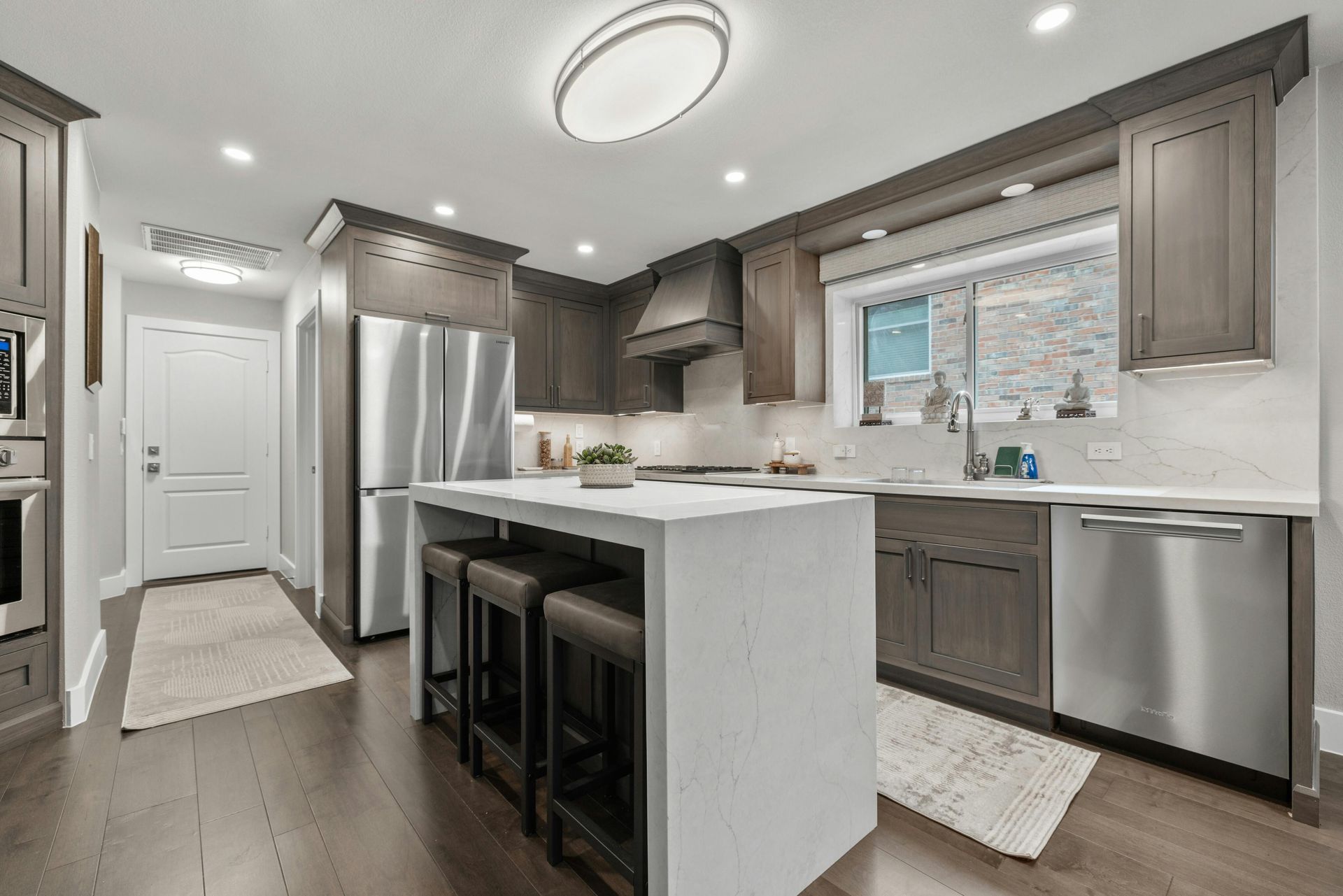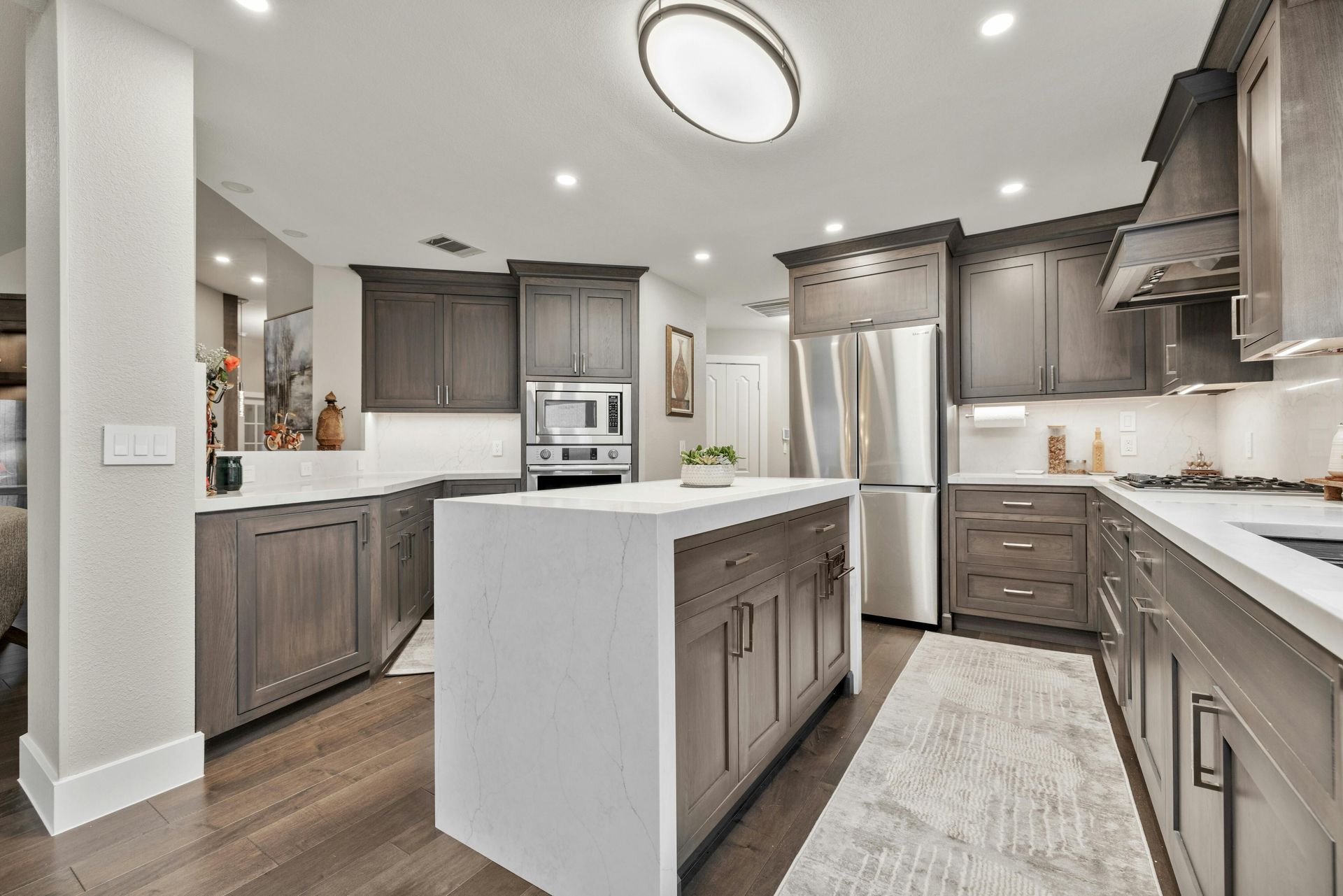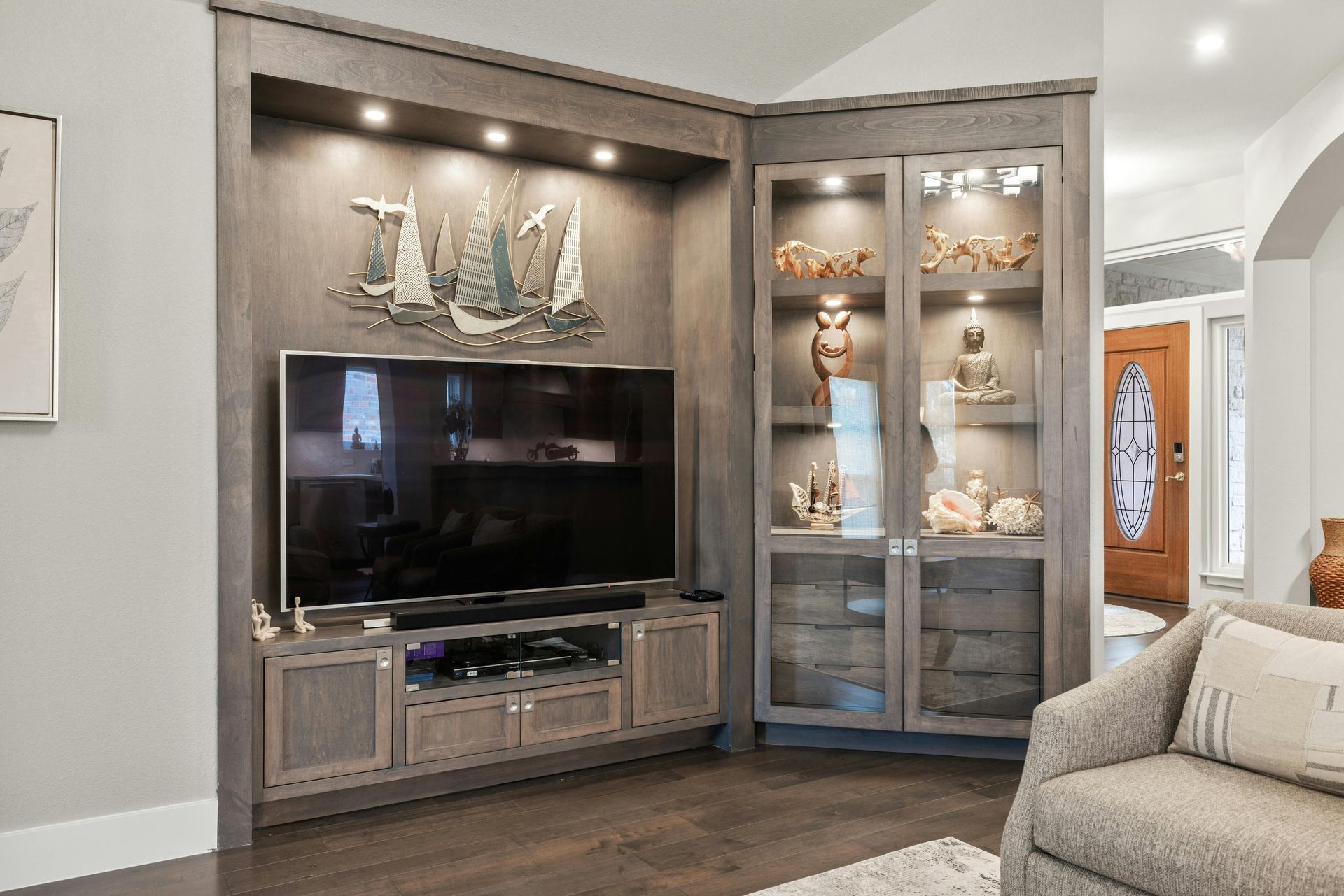 Austin, TX, 78726 - These Austin homeowners had been waiting a long time to select a provider for their whole home remodel, wanting to have some very specific details for their new home, focusing on removing awkward angles from the living room ceiling, and custom porcelain slab and carpentry work for the fireplace, living room, and home entry, and other updates. And it came out stunning!