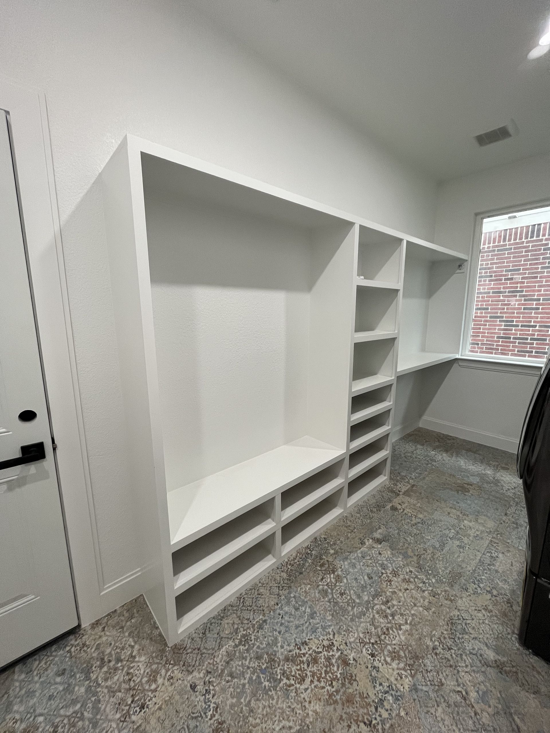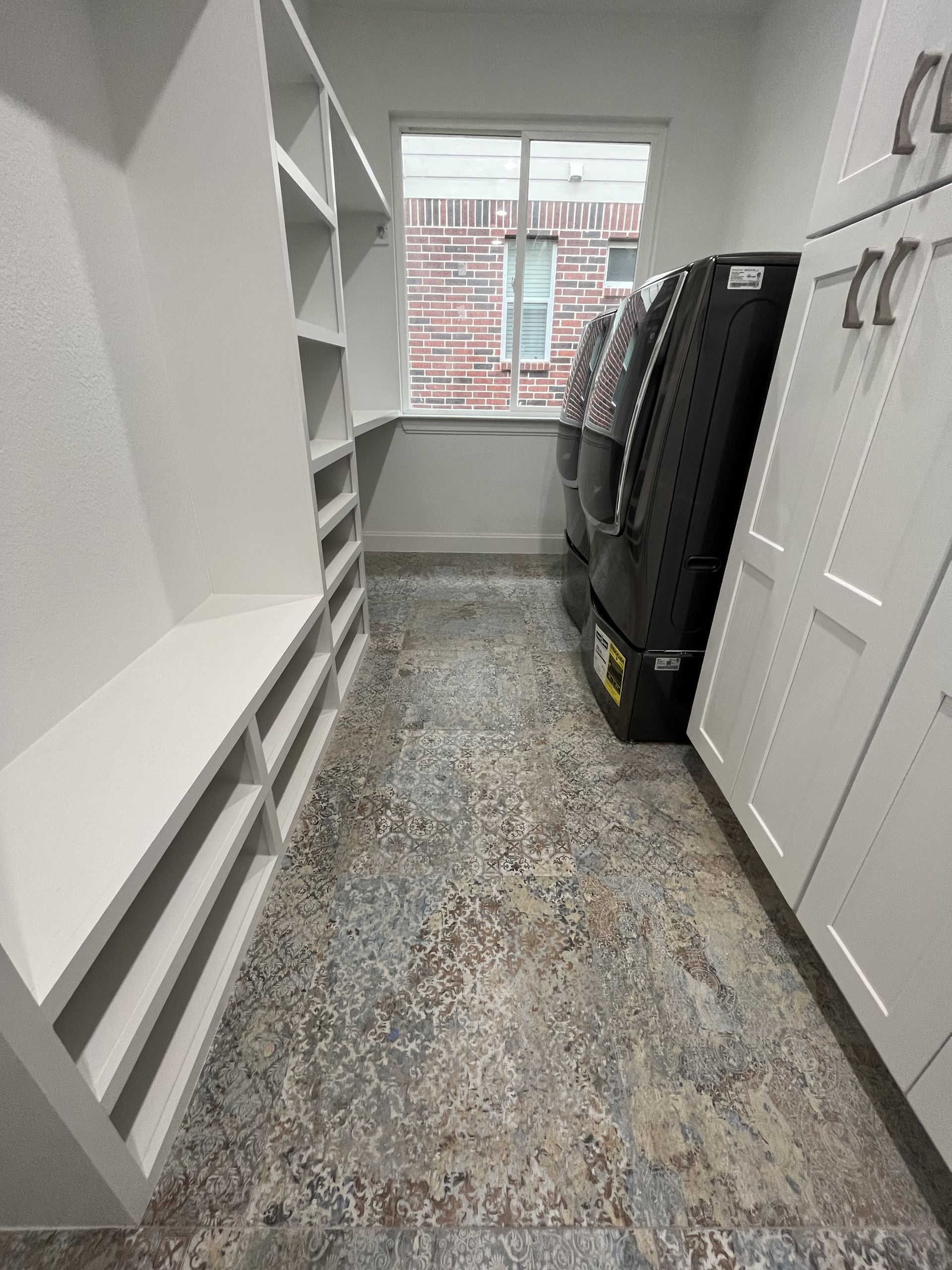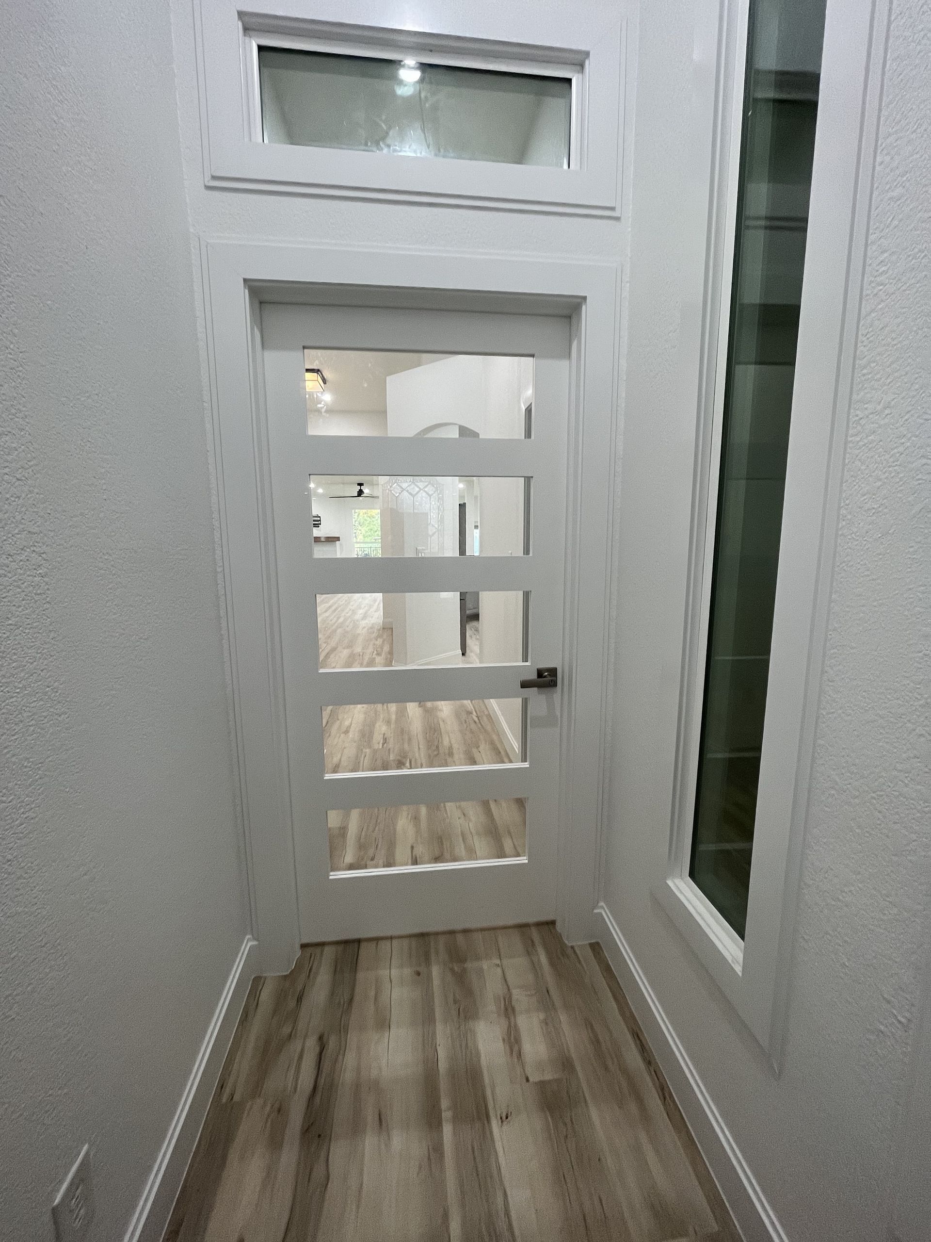 Avery Ranch, Austin, TX, 78717 - This complete home transformation started when meeting our clients to see the home and sketches of their dreams to align their home of 20 years with their family needs, along with a complete aesthetic upgrade and patio conversion to create a larger dining area. The most significant changes included adding a beautiful new foyer attached to a home office, converting a bedroom and hallway to a laundry/mudroom with garage entrance, custom shelving and cabinetry, coat area, closing off a den for a bedroom, converting existing laundry area into a large walk in pantry with cabinetry and shelving, expanding the kids bathroom and complete renovation of the master bath, and adding a powder room where there had previously been a wall nook and under stair storage area. It is amazing the functionality that can be added within an existing space, and the spacious feel from converting the patio to an interior space.