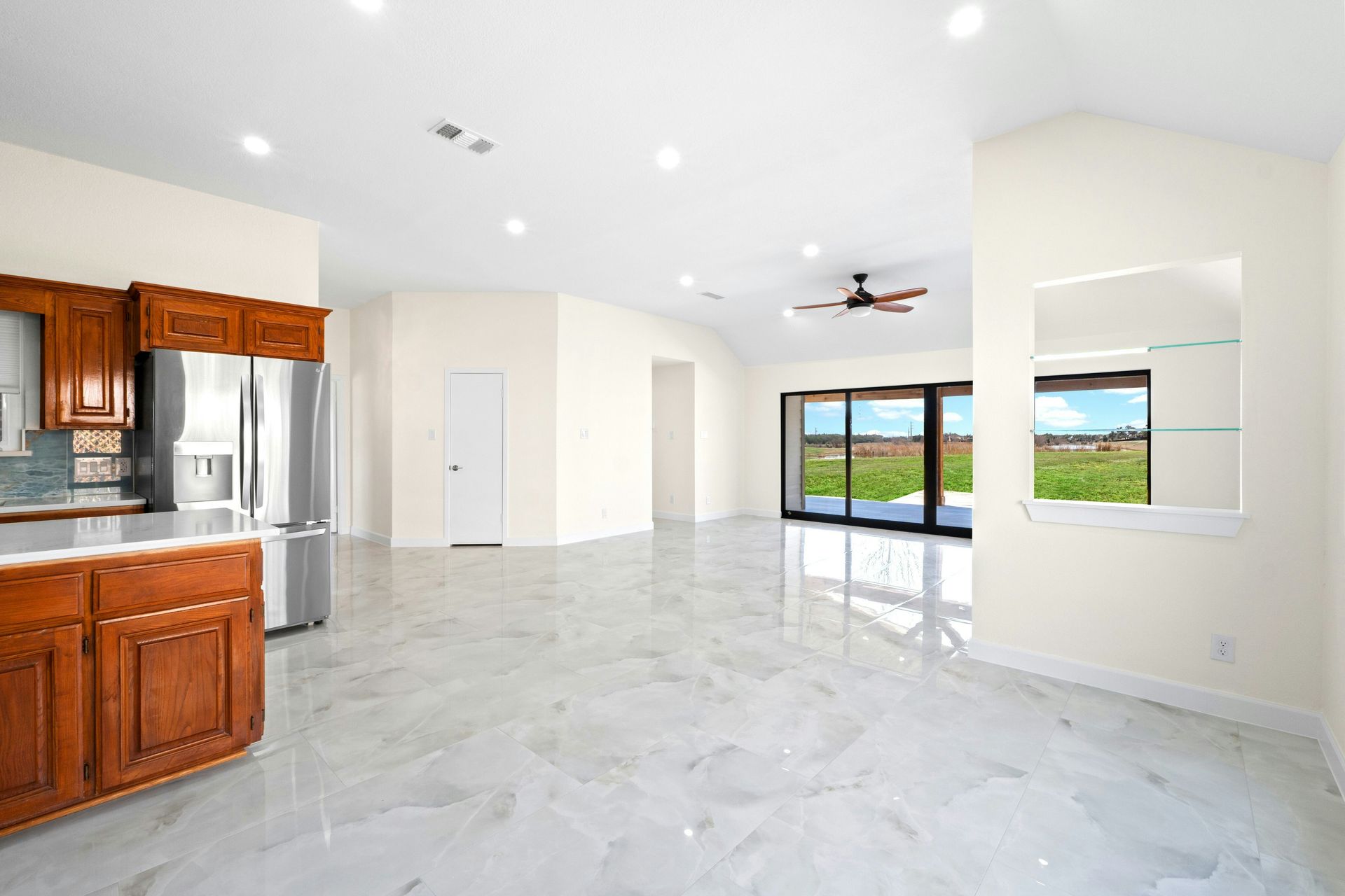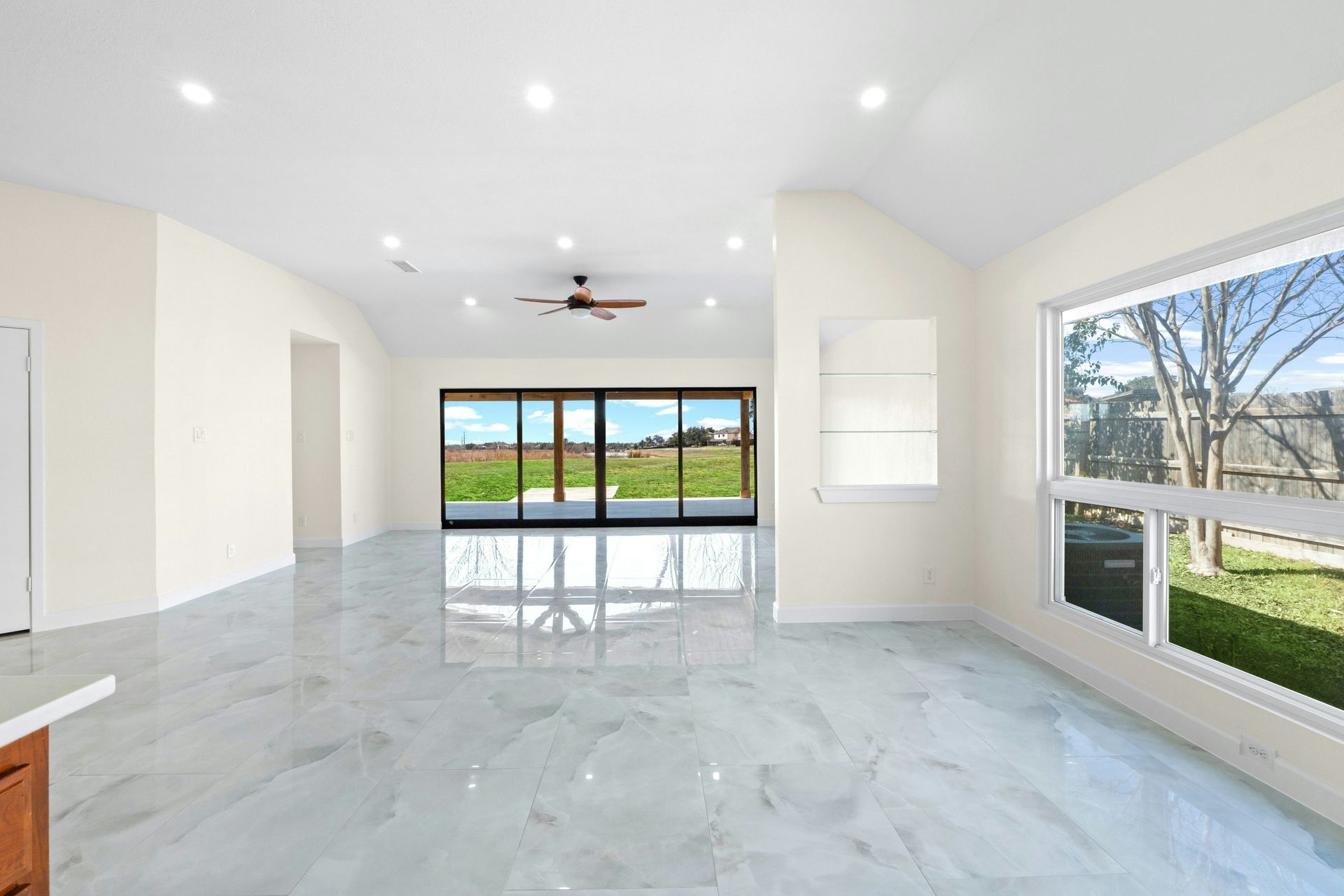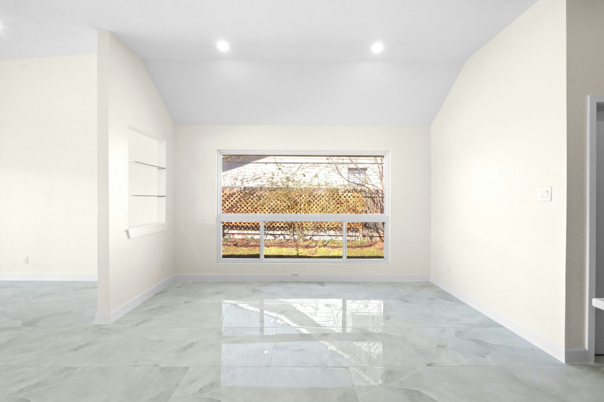 A major part of the project was to open and modernize the home, giving it a more spacious and bright feeling, install new flooring that would be easy to care for and clean, open the view to their beautiful back property, create a covered porch also to take advantage of spacious and peaceful outdoors, and last but not least, a major functional upgrade to the primary bath and a cosmetic upgrade to the guest bath.