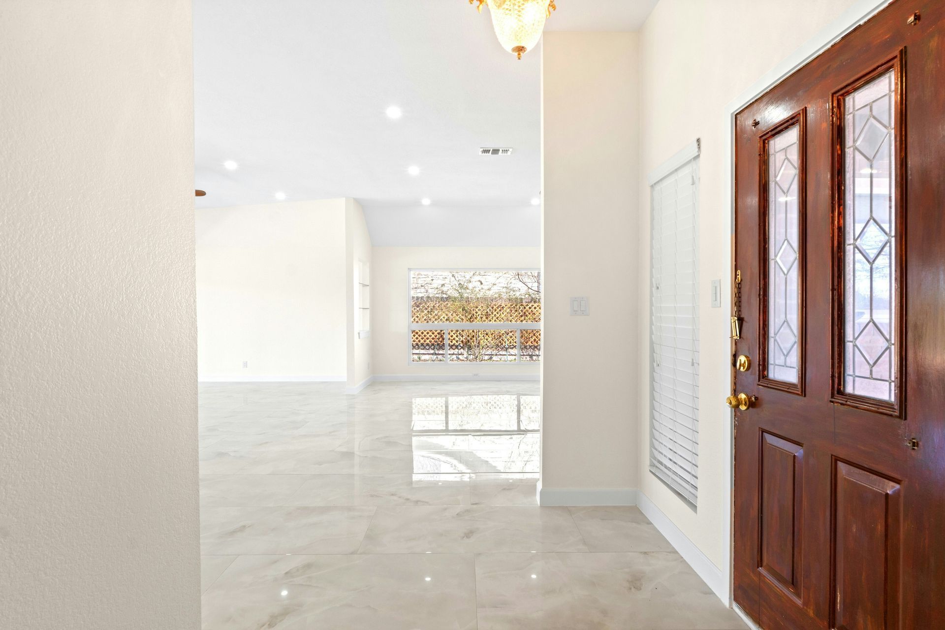 On the front exterior, upgrading the home entry by leveling the concrete, adding tile. The final touch? A new custom iron gate provides a touch more privacy and security to the front entrance.